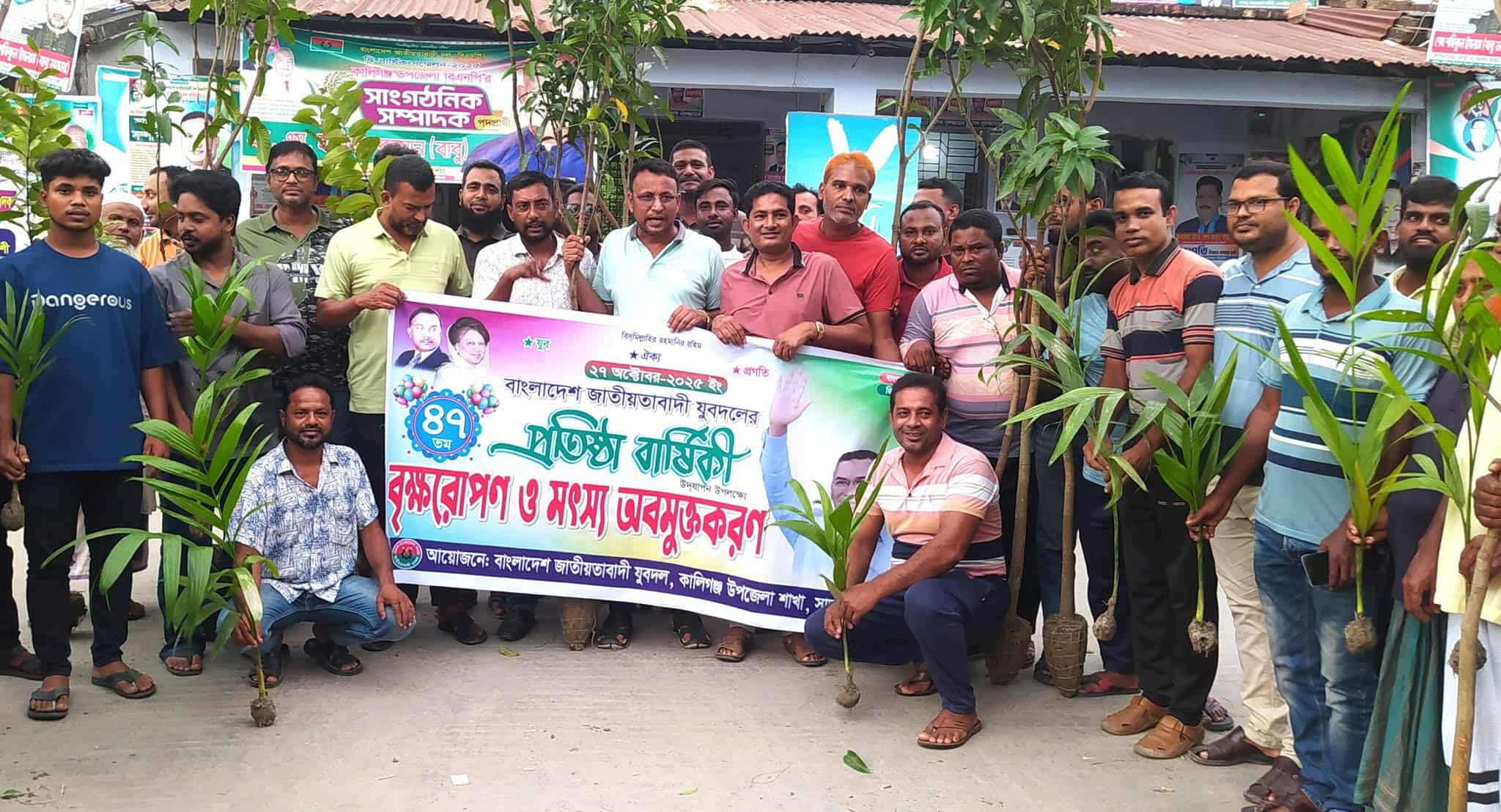কালিগঞ্জ,সাতক্ষীরা প্রতিনিধিঃবাংলাদেশ জাতীয়তাবাদী যুবদলের ৪৭তম প্রতিষ্ঠাবার্ষিকী উপলক্ষে কেন্দ্রীয় ঘোষিত কর্মসূচির অংশ হিসেবে কালিগঞ্জ উপজেলা শাখার আয়োজনে বৃক্ষরোপণ ও মৎস্য অবমুক্তকরণ কর্মসূচি পালিত হয়েছে। মঙ্গলবার (২৮ অক্টোবর) কালিগঞ্জ উপজেলা বিএনপির কার্যালয়ের সামনে বাদ আসর উপজেলা যুবদলের আহবায়ক শেখ আলাউদ্দীন সোহেল এর সভাপতিত্বে ও সদস্য সচিব শেখ আব্দুল আজিজ এর সঞ্চালনায় বৃক্ষরোপণ কর্মসূচিতে অংশগ্রহণ করেন উপজেলা যুবদলের সিনিয়র যুগ্ম আহবায়ক প্রভাষক সাইফুল ইসলাম, যুগ্ম আহবায়ক জিএম রবিউল্যাহ বাহার, উপজেলা ছাত্রদলের সাবেক সাধারন সম্পাদক রেদওয়ান ফেরদৌস রনি, উপজেলা যুবদলের যুগ্ম আহবায়ক যথাক্রমে মীর শাহাদাৎ হোসেন, আবু সাঈদ, কুশুলিয়া ইউনিয়ন যুবদলের আহবায়ক শেখ ইয়াছিন আলী, কৃষ্ণনগর ইউনিয়ন যুবদলের আহবায়ক মোঃ আমিনুর ইসলাম, ভাড়াশিমলা ইউনিয়ন যুবদলের সদস্য সচিব মোঃ নাইম হোসেন, মৌতলা ইউনিয়ন যুবদলের সদস্য সচিব তুহিনুর রহমান, যুবদল নেতা হাফিজুর রহমান, রবিউল ইসলাম, শাহিন, বাদশা, ফারুক, উপজেলা স্বেচ্ছাসেবক দলের সদস্য শেখ ইসমাইল হোসেন প্রমূখ। এসময় যুবদলের উপজেলা ও ইউনিয়ন পর্যায়ের কয়েকশ নেতৃবৃন্দ উপস্থিত ছিলেন। অনুষ্ঠানে শতাধিক মানুষের মাঝে বিভিন্ন ফলজ বৃক্ষ যেমন (একটা আম, একটা সুপারী, একটা পেয়ারা) চারা বিতরণ করা হয় ও কাঁকশিয়ালী নদীতে মৎস্য অবমুক্তকরণ করা হয়।