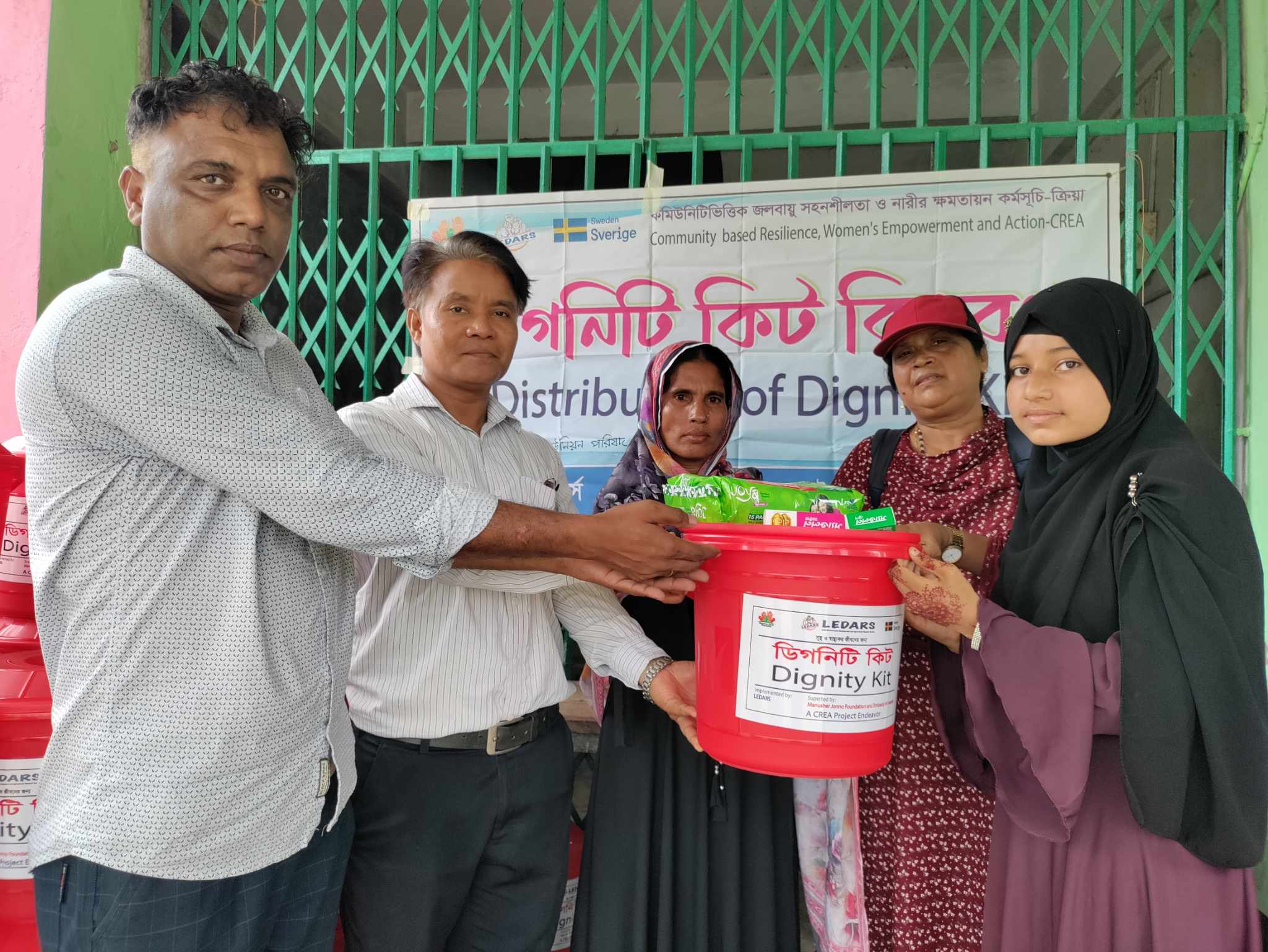 সংরক্ষিত মহিলা মেম্বার ফরিদা পারভীন তিনি বলেন, লিডার্সের উদ্যোগে সহযোগিতায় প্রদানে মানুষের জন্য ফাউন্ডেশন (এমজেএফ) এবং এ্যাম্বাসি অব সুইডেন। দেশের অন্যতম বৃহৎ মানবিক সংগঠন হিসেবে দীর্ঘদিন ধরে দুর্যোগ ও জলবায়ু ঝুঁকিপূর্ণ জনগোষ্ঠীর পাশে থেকে কাজ করে আসছে। আজকের ডিগনিটি কিট বিতরণ কার্যক্রম তারই একটি বাস্তব উদাহরণ। নারীদের স্বাস্থ্য, সুরক্ষা এবং আত্মসম্মান রক্ষায় এই কিট একটি গুরুত্বপূর্ণ সহায়ক উপকরণ। এটি শুধু উপকরণ নয় বরং সম্মানজনক জীবনের প্রতি আমাদের প্রতিশ্রুতির প্রতিফলন। ডিগনিটি কিটের মধ্যে রয়েছে প্রয়োজনীয় জিনিস-পত্র যেমন, স্যানিটারি প্যাড, সাবান,বালতি সহ আরো অনেক কিছু।