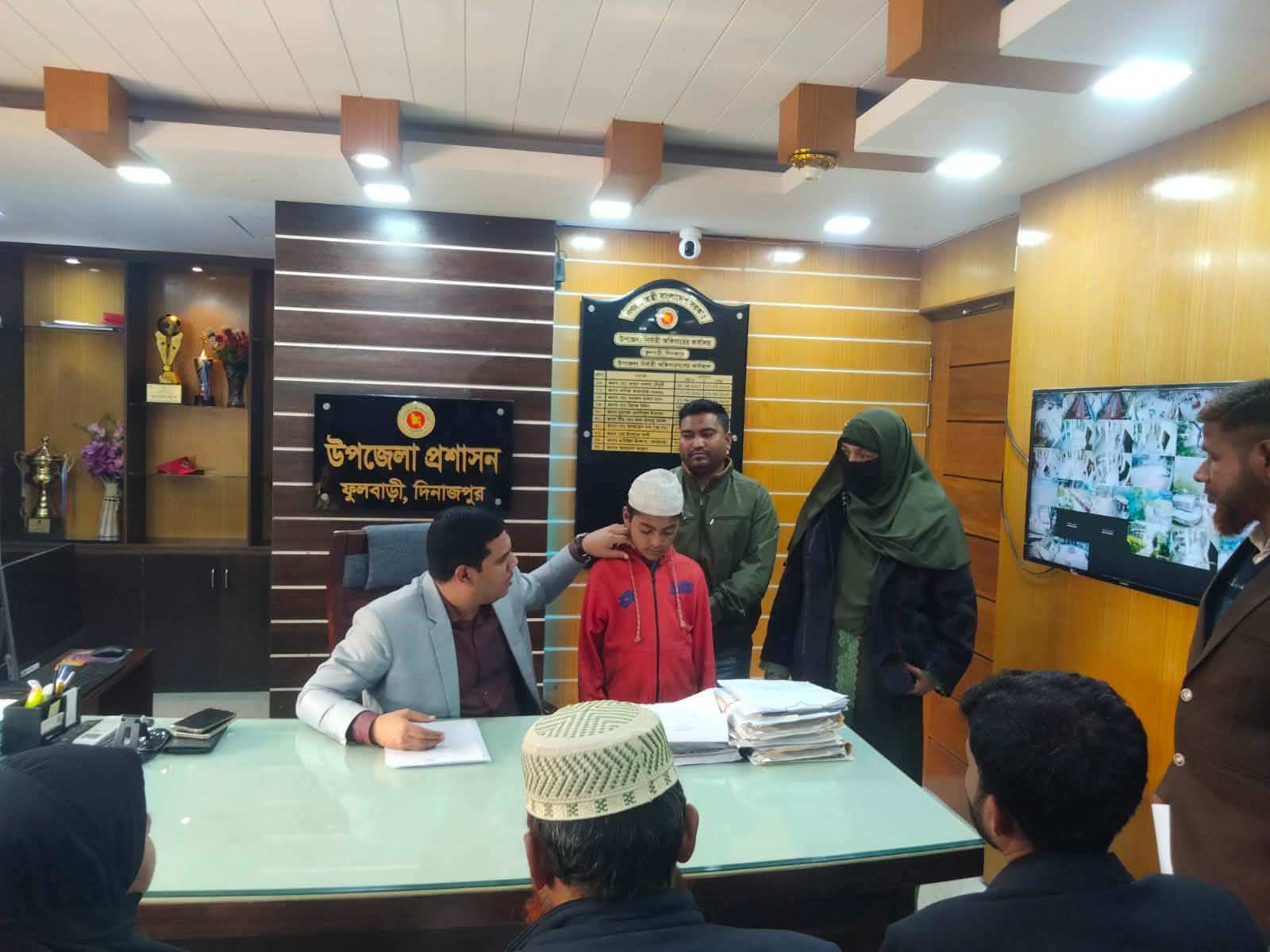 সমাজসেবা অধিদপ্তরের তৎপরতায় শিশুটির পরিচয় নিশ্চিত করা হয় এবং তার বাবা-মায়ের সন্ধান পাওয়া যায়। পরে ফুলবাড়ী উপজেলা প্রশাসনের উদ্যোগে উপজেলা নির্বাহী কর্মকর্তা আহমেদ হাসান এবং সমাজসেবা অধিদপ্তরের মো. সানোয়ার হোসেন-এর উপস্থিতিতে শিশুটিকে আনুষ্ঠানিকভাবে তার পরিবারের কাছে হস্তান্তর করা হয়।