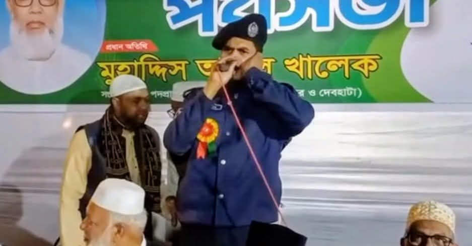 যশোর পুলিশের এক প্রেস বিজ্ঞপ্তিতে জানানো হয়েছে, গত ৭ ডিসেম্বর সাতক্ষীরা পৌরসভার ১ নম্বর ওয়ার্ড জামায়াতের আমির জিয়াউর রহমানের সভাপতিত্বে সাতক্ষীরা-২ (সদর ও দেবহাটা) আসনের জামায়াতে ইসলামী মনোনীত মুহাদ্দিস আব্দুল খালেকের দাঁড়িপাল্লা প্রতীকের নির্বাচনী পথসভা আমতলা মোড়ে অনুষ্ঠিত হয়। রাত ৮টা থেকে সাড়ে ৮টা পর্যন্ত ওই পথসভায় ইউনিফর্ম পরিহিত অবস্থায় ইসলামী সংগীত পরিবেশন ও নির্বাচনী বক্তব্য দেন যশোর পুলিশ লাইনসে কর্মরত ও সাতক্ষীরা পুলিশ লাইনে পূর্বে কর্মরত সহকারী উপপরিদর্শক (সশস্ত্র) ৭৩৭ মহিবুল্লাহ কারী মহিবুল্লাহ। বিষয়টি আরআই যশোর পুলিশ লাইনসের মাধ্যমে জানা যায়।