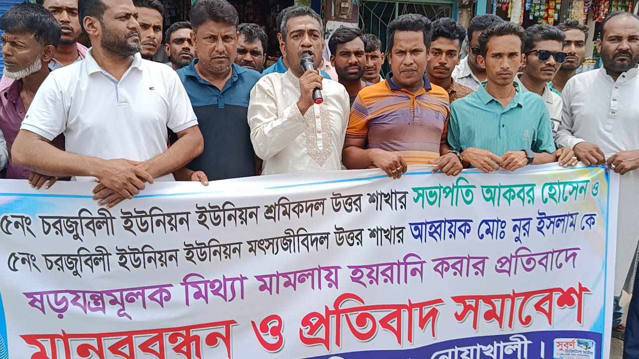 মোঃ আবুল বাসার,নোয়াখালী প্রতিনিধিঃনোয়াখালী সুবর্ণচর উপজেলার চরজুবিলী ইউনিয়ন উত্তর শাখা শ্রমিক দল সভাপতি আকবর হোসেন ও মৎস্যজীবি দল চরজুবিলী ইউনিয়ন শাখার আহবায়ক নুর ইসলাম এর নামে  যড়যন্ত্রমূলক মিথ্যা মামলা ও চরজব্বর থানাকে দালালমুক্ত করার দাবিতে উপজেলা শ্রমিক দলের  উদ্যোগে মানববন্ধন ও প্রতিবাদ সমাবেশ কর্মসূচি অনুষ্ঠিত হয়েছে।