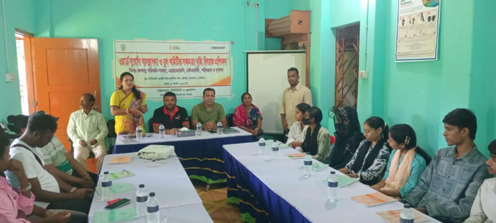 (১১ আগষ্ট) সোমবার সিসিআরবি প্রকল্প অফিস প্রশিক্ষণ হল রুমে মুন্সিগঞ্জ ইউনিয়নের ২ নং এবং ৪ নং ওয়ার্ডের ওয়ার্ড দুর্যোগ ব্যবস্থাপনা কমিটি ও যুব কমিটির সদস্যদের সক্ষমতা বৃদ্ধি বিষয়ক প্রশিক্ষণের আয়োজন করা হয়। প্রশিক্ষণ অনুষ্ঠানে উপস্থিত ছিলেন মুন্সিগঞ্জ ইউনিয়নের ভারপ্রাপ্ত চেয়ারম্যান মো: সিরাজুল ইসলাম, ইউপি সদস্য ওয়ার্ড দুর্যোগ ব্যবস্থাপনা কমিটির সভাপতি কাজল কান্তি সরদার, সংরক্ষিত আসনের ইউপি সদস্য নীপা চক্রবর্ত্তী, ইউপি সদস্য পলাশী রানী, সুন্দরবন প্রেস ক্লাবের সভাপতি বিলাল হোসেন এবং ফ্রেন্ডশিপ সংস্থার এ এস ডি প্রকল্পের ব্যবস্থাপক জুয়েল হাসান, সিসিডিবি সংস্থা কর্তৃক পরিচালিত পিসিআরসিবি প্রকল্পের উপজেলা কো- অর্ডিনেটর মি: সুজন বিশ্বাস এবং এনগেজ প্রকল্পের প্রোগ্রাম অফিসার নিলিমা রানী। এছাড়া উপস্থিত ছিলেন সিসিআরবি প্রকল্পের মাঠ পর্যায়ের কর্মকর্তাবৃন্দ। প্রশিক্ষনের বিষয় বস্তু ছিলো- জলবায়ু পরিবর্তন সমস্যা, এ্র্যাডভোকেসি, নেটওয়ার্কিং, পরিকল্পনা এবং সু শাসন নিশ্চিত করা। প্রশিক্ষনের মাধ্যমে ওয়ার্ড দুর্যোগ ব্যবস্থাপনা কমিটির সাথে যুব কমিটি সম্মিলিত প্রচেষ্টায় স্থানীয় দুর্যোগ ঝুকিহ্রাস কর্ম পরিকল্পনা প্রনয়ণ, দুর্যোগ সংকেত প্রচার, জলবায়ু পরিবর্তজনিত সমস্যা মোকাবিলার জন্য প্রয়োজনীয় অভিযোজন কৌশল অবলম্বন করে একটি রেজিলিয়েন্স জনগোষ্ঠীতে রূপান্তরিত করা।