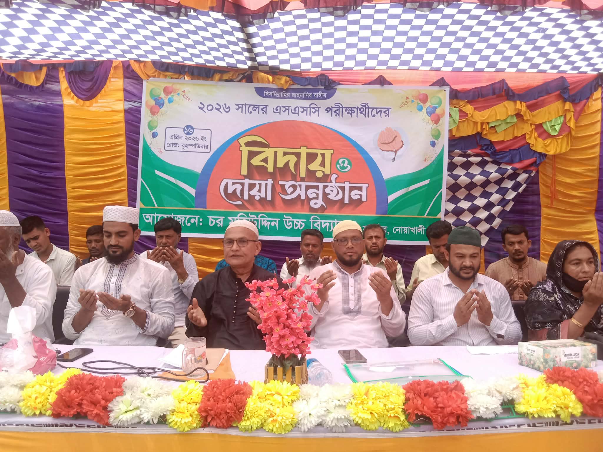 মোঃ আবুল বাসার,নিজস্ব প্রতিনিধি,নোয়াখালীঃ১৬ ই এপ্রিল (বৃহস্পতিবার) বেলা ১২ টায় টায় চর জুবিলী ইউনিয়নের চর মহিউদ্দিন উচ্চ বিদ্যালয় মাঠ প্রঙ্গনে দোয়া ও বিদায় অনুষ্ঠানের আয়োজন করে বিদ্যালয় পরিচালনা কমিটি।