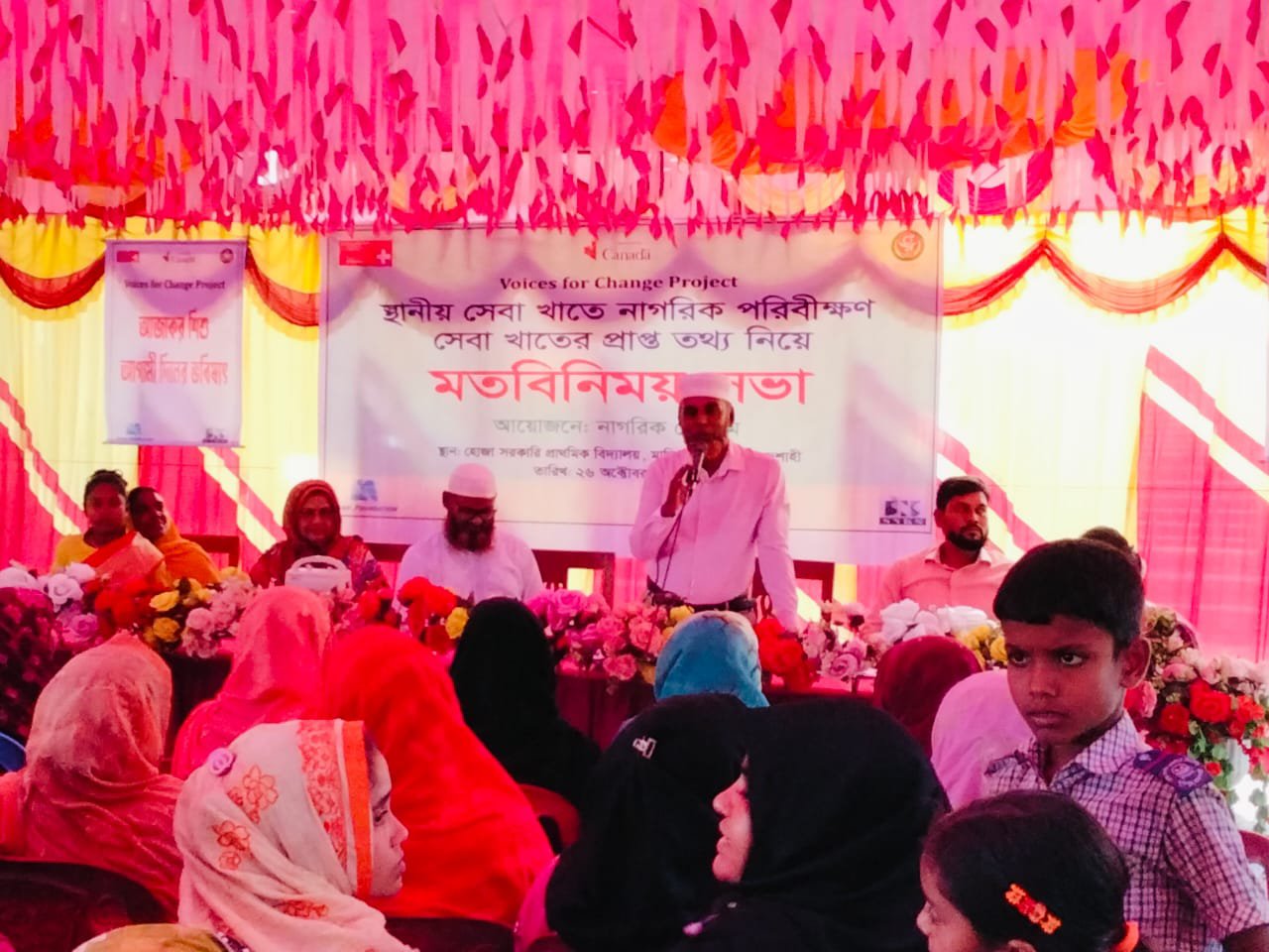 রাজশাহীর দুর্গাপুরে "Voices for Change Project এর সহযোগিতায় স্থানীয় সেবা খাতে নাগরিক পরিবীক্ষণ সেবা খাতের প্রাপ্ত তথ্য নিয়ে মতবিনিময় সভা অনুষ্ঠিত হয়েছে।