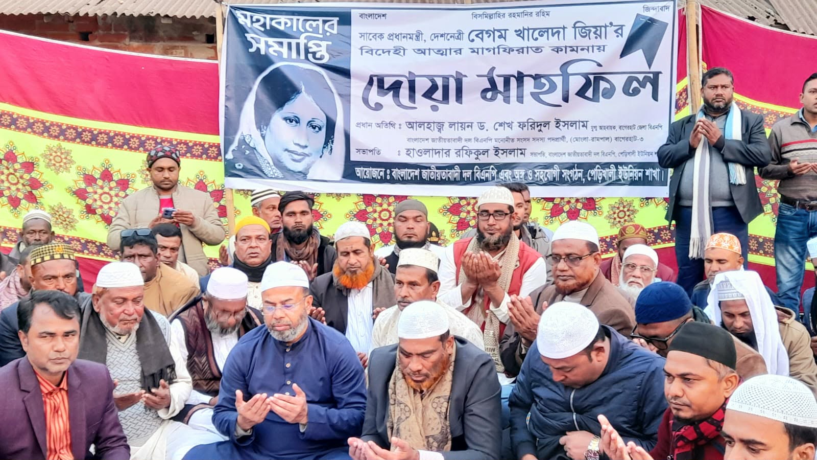 লায়লা সুলতানা,রামপাল (বাগেরহাট)ঃ রামপালের পেড়িখালী বাজারে বিএনপির সাবেক চেয়ারপার্সন প্রয়াত বেগম খালেদা জিয়ার আত্মার মাগফিরাত কামনা করে দোয়া মাহফিল অনুষ্ঠিত হয়েছে। শনিবার (১০ জানুয়ারি) উপজেলার পেড়িখালী ইউনিয়ন বিএনপির উদ্যোগ পেড়িখালী বাজারে এ দোয়া মাহফিল অনুষ্ঠিত হয়।