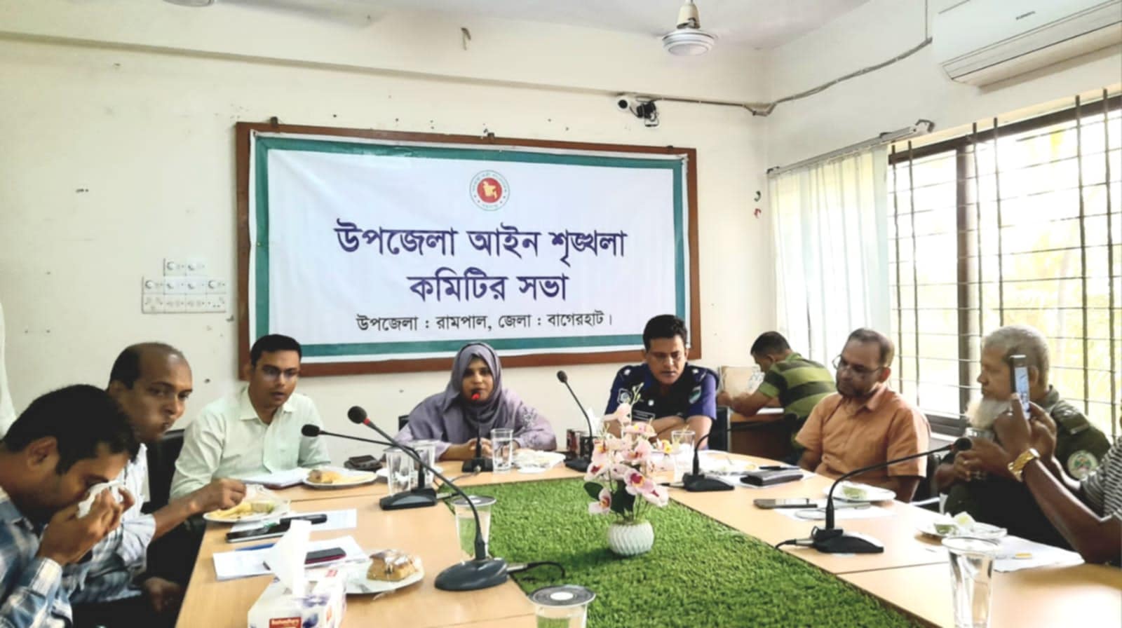 লায়লা সুলতানা,রামপাল (বাগেরহাট) রামপালে আইনশৃঙ্খলা বিষয়ক এক সভা অনুষ্ঠিত হয়েছে। বৃহস্পতিবার (২৫ সেপ্টেম্বর) সকাল ১০ টায় উপজেলা সম্মেলন কক্ষে নির্বাহী কর্মকর্তা মিজ তামান্না ফেরদৌসি এর সভাপতিত্বে অনুষ্ঠিত সভায় বক্তব্য দেন, উপজেলা সহকারী কমিশনার (ভূমি) অভিজিৎ চক্রবর্তী, উপজেলা স্বাস্থ্য ও প. প কর্মকর্তা ডাক্তার সুকান্ত কুমার পাল, ওসি মো. আতিকুর রহমান, প্রেসক্লাব রামপাল এর সভাপতি এম, এ সবুর রানা, রামপাল সরকারি কলেজের শরীর চর্চা শিক্ষক মো. তাহিদুল ইসলাম, পল্লিবিদ্যুৎ সমিতির ডিজিএম প্রকৌশলী মো. কামাল হোসেন, আনসার কর্মকর্তা তরিকুল ইসলাম, উপজেলা এনসিপি'র প্রধান সমন্বয়ক মো. মাজিদুর রহমান জুয়েল, বৈশম্য বিরোধী ছাত্র আন্দোলনের সমন্বয়ক খালিদ হাসান নোমান প্রমুখ। সভায় আসন্ন শারদীয় দুর্গোৎসব পালন নির্বিঘ্ন করার জন্য নিরাপত্তা জোরদার, সিসি ক্যামেরা নিশ্চিত করণ ও সকল রাজনৈতিক দলের সার্বিক সহযোগীতা কামনা করা হয়।