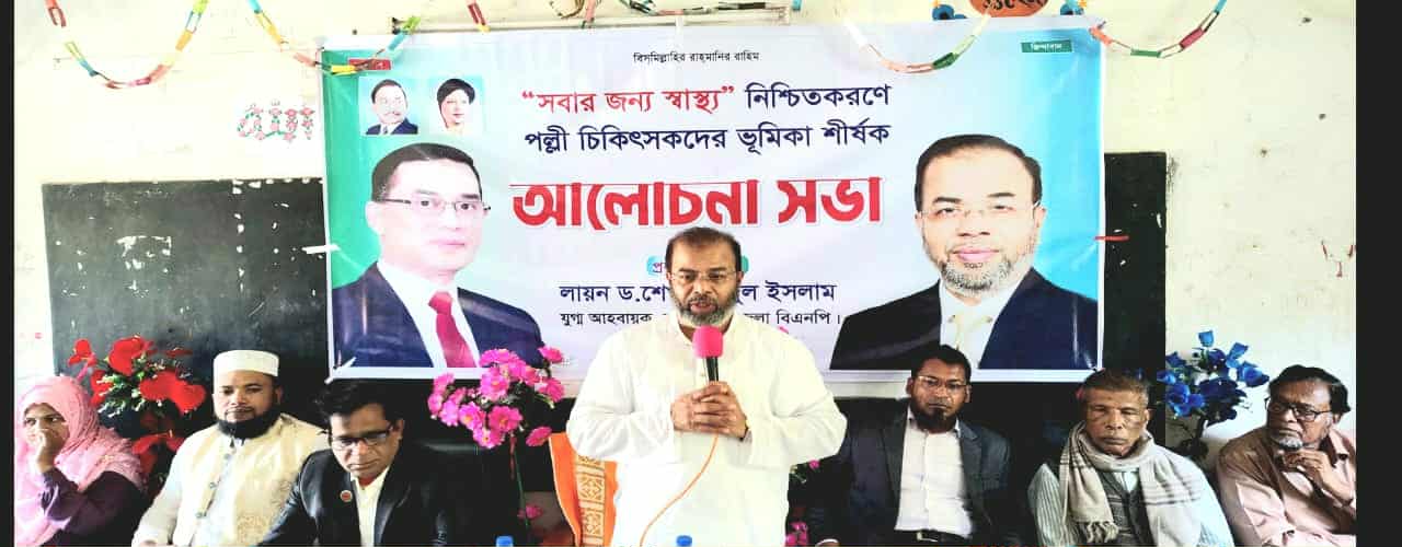 পল্লী চিকিৎসক সমিতির সভাপতি চিকিৎসক এম, এ কবিরের সভাপতিত্বে আলোচনা সভায় বক্তব্য দেন, উপজেলা বিএনপি সাবেক সদস্য সচিব কাজী জাহিদুল ইসলাম, উপজেলা যুবদলের আহবায়ক মল্লিক জিয়াউল হক জিয়া, সমিতির সহসভাপতি লুৎফর রহমান, আ. মাজেদ, নাসিম বিল্লাহ, কামাল হোসেন প্রমুখ।