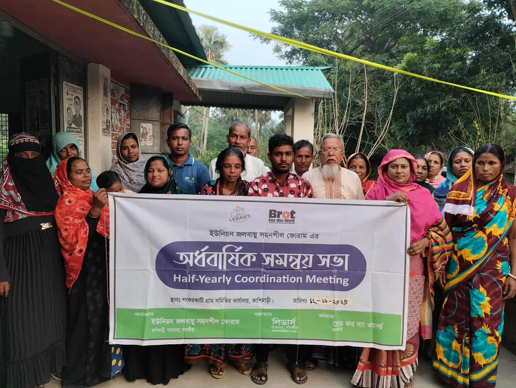কাশিমাড়ী ইউনিয়ন জলবায়ু সহনশীল ফোরামের আয়োজনে, বেসরকারি উন্নয়ন সংস্থা লিডার্স (LEDARS) এর বাস্তবায়নে এবং দাতা সংস্থা ব্রেড ফর দ্য ওয়ার্ল্ড (Bread for the World) এর অর্থায়নে শ্যামনগর উপজেলার শংকরকাটি গ্রামে আজ অনুষ্ঠিত হয়েছে অর্ধ-বার্ষিক সমন্বয় সভা।