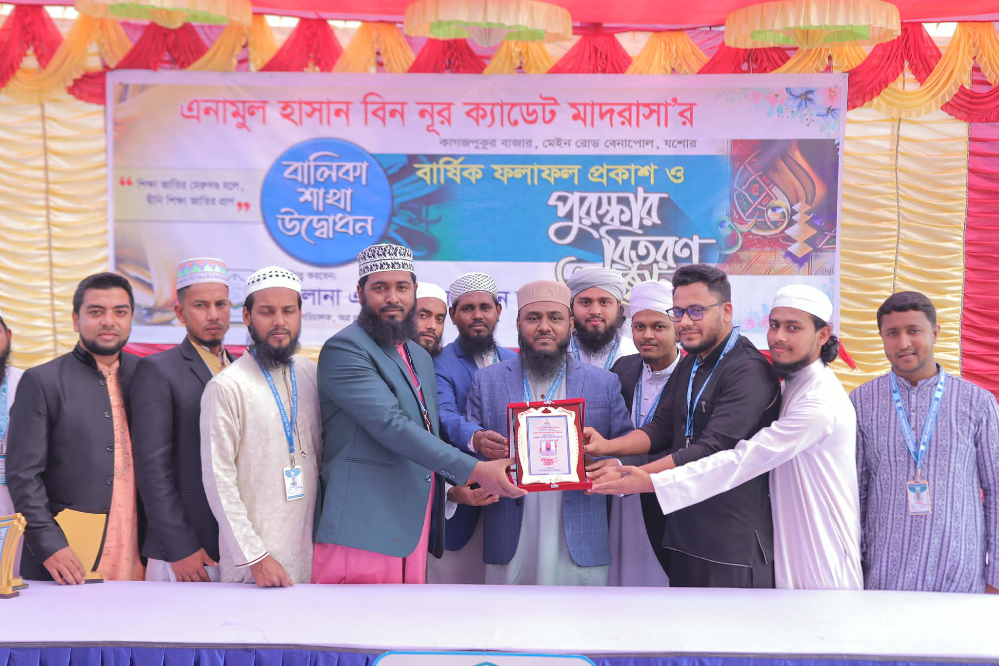 ইকরামুল ইসলাম,বেনাপোল প্রতিনিধিঃশিক্ষা জাতির মেরুদণ্ড হলে, দ্বীনি শিক্ষা জাতির প্রাণ, স্লোগানে স্বল্প সময়ে অত্যাধিক সুনাম অর্জনকারী দ্বীনি শিক্ষা প্রতিষ্ঠান যশোরের বেনাপোল পোর্ট থানার কাগজ পুকুর বাজার সংলগ্ন, এনামুল হাসান বিন নূর ক্যাডেট মাদরাসা'র বার্ষিক পরীক্ষার ফলাফল প্রকাশ ও পুরস্কার বিতরণ অনুষ্ঠান এবং বালিকা শাখা উদ্বোধন করা হয়।