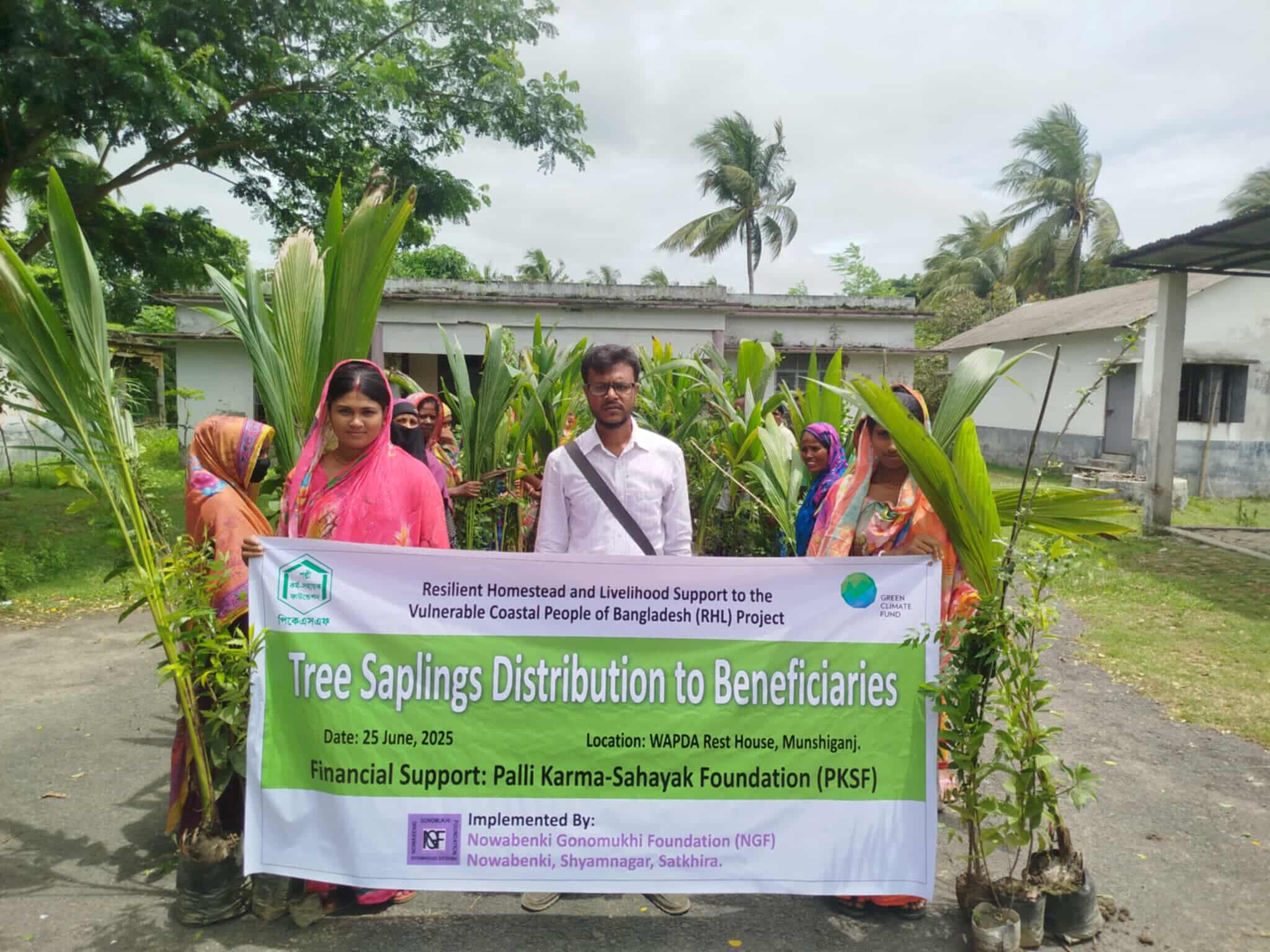 জলবায়ু সহনশীলতা বৃদ্ধি এবং টেকসই জীবিকার উন্নয়নের লক্ষ্যে নওয়াবেঁকী গণমুখী ফাউন্ডেশন (এনজিএফ) বাস্তবায়িত RHL প্রকল্পের আওতায় শ্যামনগর উপজেলার বিভিন্ন অঞ্চলের ২১০০ জন উপকারভোগীর মধ্যে গাছের চারা বিতরণ করা হয়েছে।