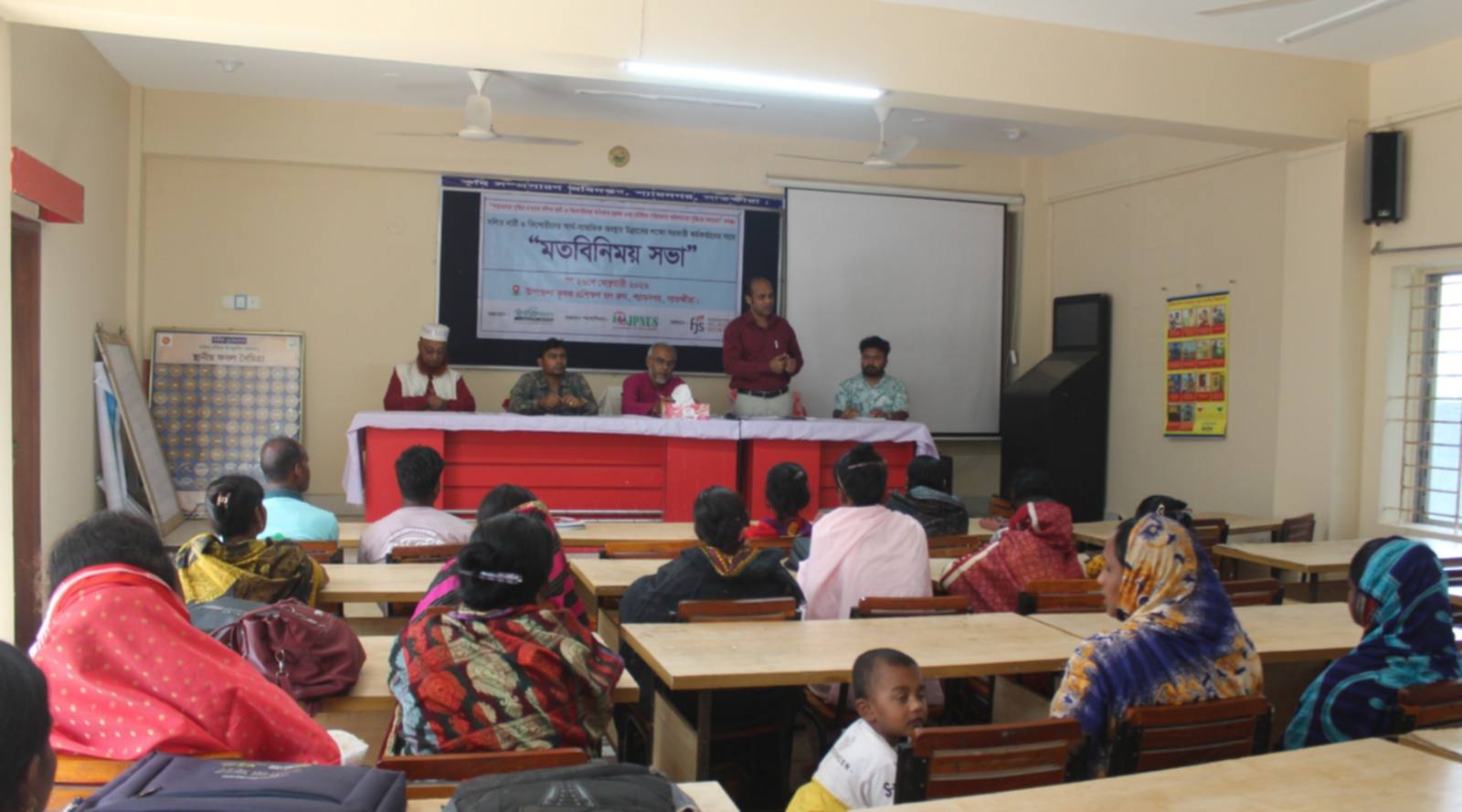 বৃহস্পতিবার (২৬ ফেব্রুয়ারি) “সচেতনতা বৃদ্ধির মাধ্যমে দলিত নারী ও কিশোরীদের অধিকার সুরক্ষা এবং মৌলিক পরিষেবায় অভিগম্যতা বৃদ্ধিতে সহায়তা” শীর্ষক প্রকল্পের আওতায় এ সভার আয়োজন করা হয়। নাগরিক উদ্যোগ-এর বাস্তবায়নে, জয়িতা প্রতিবন্ধী নারী উন্নয়ন সংস্থা-র বাস্তবায়ন সহযোগিতায় এবং ফাউন্ডেশন ফর এ জাস্ট সোসাইটি-এর অর্থায়নে উপজেলা কৃষক প্রশিক্ষণ হলরুমে সভাটি অনুষ্ঠিত হয়।