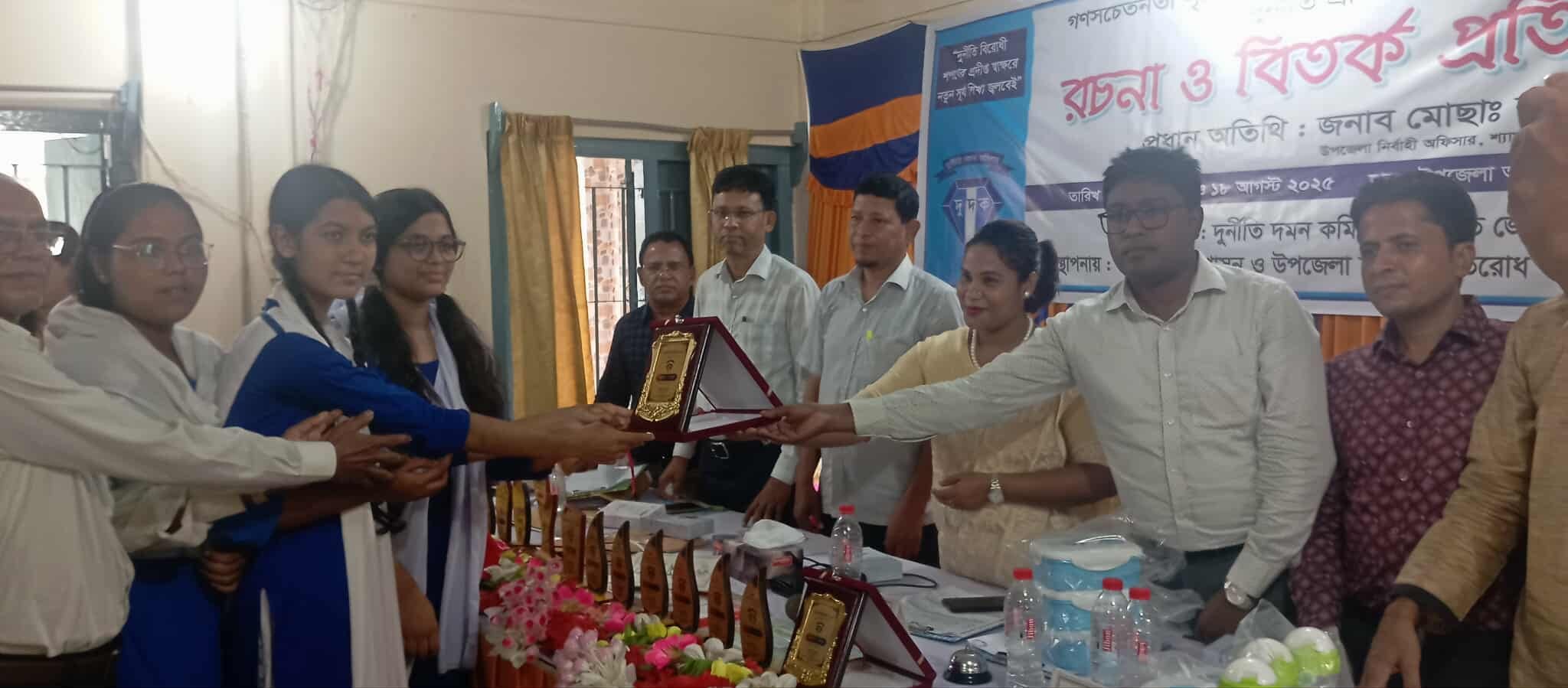 শ্যামনগর প্রতিনিধিঃ বুধবার(১৩ আগষ্ট) দুপুরে সাতক্ষীরার শ্যামনগর উপজেলা প্রশাসন ও উপজেলা দুর্নীতি প্রতিরোধ কমিটির ব্যবস্থাপনায় ও দুর্নীতি দমন কমিশন সমন্বিত জেলা কার্যালয়,খুলনার আয়োজনে শ্যামনগর অফিসার্স ক্লাবে বিতর্ক প্রতিযোগিতার চুড়ান্ত পর্ব ও রচনা প্রতিযোগিতা শেষে সমাপনী অনুষ্ঠানে প্রধান অতিথির বক্তব্য সহ পুরস্কার বিতরণ করেন শ্যামনগর উপজেলা নির্বাহী অফিসার মোছা ঃ রণী খাতুন।