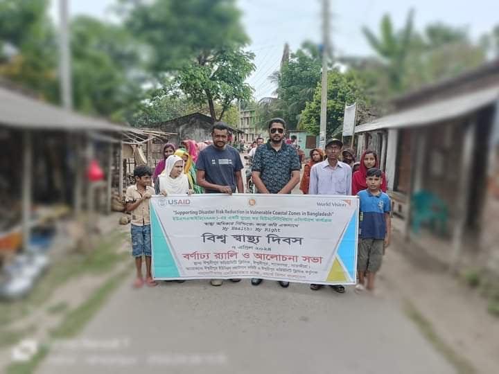 My Health, My Right’’ এ প্রতিপাদ্যকে সামনে নিয়ে শ্যামনগর উপজেলার ঈশ্বরীপুর ইউনিয়ন ওয়াটসান কমিটি ও ঈশ্বরীপুর কমিউনিটি ক্লিনিক কর্তৃপক্ষের আয়োজনে এবং এস ডি আর আর প্রকল্পের আওতায় ওয়ার্ল্ড ভিশন বাংলাদেশের সহযোগিতায় শ্যামনগর উপজেলার ঈশ্বরীপুর কমিউনিটি ক্লিনিকে বিভিন্ন কর্মসূচির মাধ্যমে বিশ্ব স্বাস্থ্য দিবস ২০২৪ উদযাপন উপলক্ষ্যে বণ্যার্ঢর্্যালী ও আলোচনা সভা অনুষ্ঠিত হয়েছে। ( ৭ এপ্রিল রবিবার ২০২৪) সকাল ১০ টায় বিশ্ব স্বাস্থ্য দিবস পালন উপলক্ষ্যে ঈশ্বরীপুর কমিউনিটি ক্লিনিক চত্তর থেকে এক বর্ণাঢ্য র্্যালী প্রধান প্রধান সড়ক প্রদক্ষিণ করে ঈশ্বরীপুর কমিউনিটি ক্লিনিকের হল রুমে আলোচনা সভায় অংশ নেয় । ঈশ্বরীপুর কমিউনিটি ক্লিনিকের সিএইচসিপি শারমিন দিলশাদের সভাপতিত্বে প্রধান অতিথি হিসেবে আলোচনা সভায় বক্তব্য রাখেন শ্যামনগর উপজেলা স্বাস্থ্য কমপ্লেক্সের স্বাস্থ্য সহকারী অপূর্ব রঞ্জন মন্ডল, সহকারী স্বাস্থ্য পরিদর্শক আব্দুল্লাহ আল ফারুক (সবুজ) প্রমুখ। বক্তারা বলেন স্বাস্থ্য ঠিক রাখতে হলে পরিষ্কার পরিচ্ছন্নতা ও বিভিন্ন স্বাস্থ্যবিধি মেনে চলতে হবে সকলকে। কমপক্ষে ২০ সেকেন্ড ধরে সাবান ও তরল সাবান ব্যবহার করে দুই হাত নিরাপদ পানি দিয়ে ধুতে হবে। খাদ্য পরিষ্কার ও ঢাকনা যুক্ত পাত্রে সংরক্ষণ করতে হবে। দুষিত পানি পান করার কারণে বিভিন্ন পানিবাহিত রোগে আক্রান্ত হতে পারে। সেজন্য খাবার জন্য নিরাপদ পানি পান করতে হবে। আলোচনা সভা পরিচালনা করেন এস ডি আর আর প্রকল্প কর্মকর্তা (ডি আর আর) দিপঙ্ককর সাহা। এসময় আরো উপস্থিত ছিলেন এলাকাবাসী ও সেবা গ্ৰহীতা বৃন্দ।