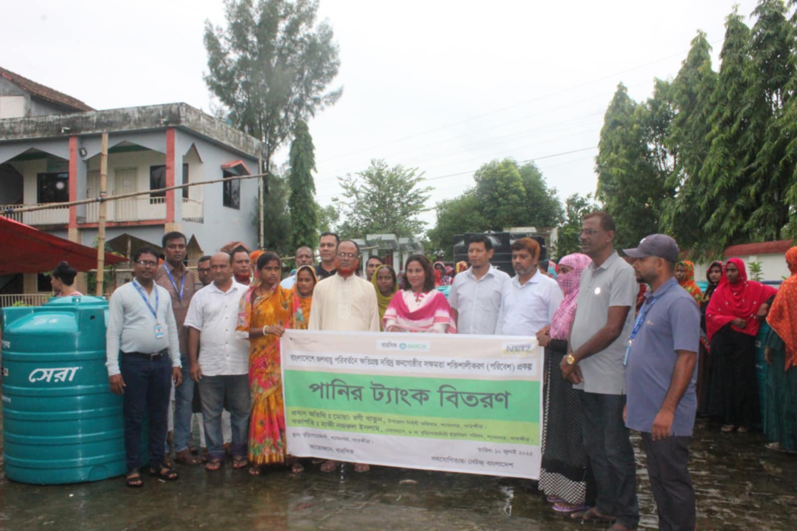 উক্ত পানির ট্যাংক বিতরণ অনুষ্ঠানে বারসিক পরিবেশ প্রকল্পের উপজেলা সমন্বয়কারী মননজয় মন্ডলের সঞ্চালনায় বুড়িগোয়ালিনী ইউপি চেয়ারম্যান হাজী নজরুল ইসলামের সভাপতিত্বে প্রকল্প সংশ্লিষ্ট শুভেচ্ছা বক্তব্য প্রদান করেন জেলা সমন্বয়কারী মাসুম বিল্লাহ, প্রধান অতিথি হিসাবে উপস্থিত থেকে বক্তব্য প্রদান করেন উপজেলা নির্বাহী অফিসার মোছাঃ রনি খাতুন । তিনি বলেন,“ উপকুলীয় এলাকায় বারসিক পরিবেশ প্রকল্পের মাধ্যমে অতি দরিদ্র পরিবার গুলোতে পানির ট্যাংক সহযোগিতা করায় সুপেয় পানি সংকট নিরসনে ভুমিকা রাখবে।”