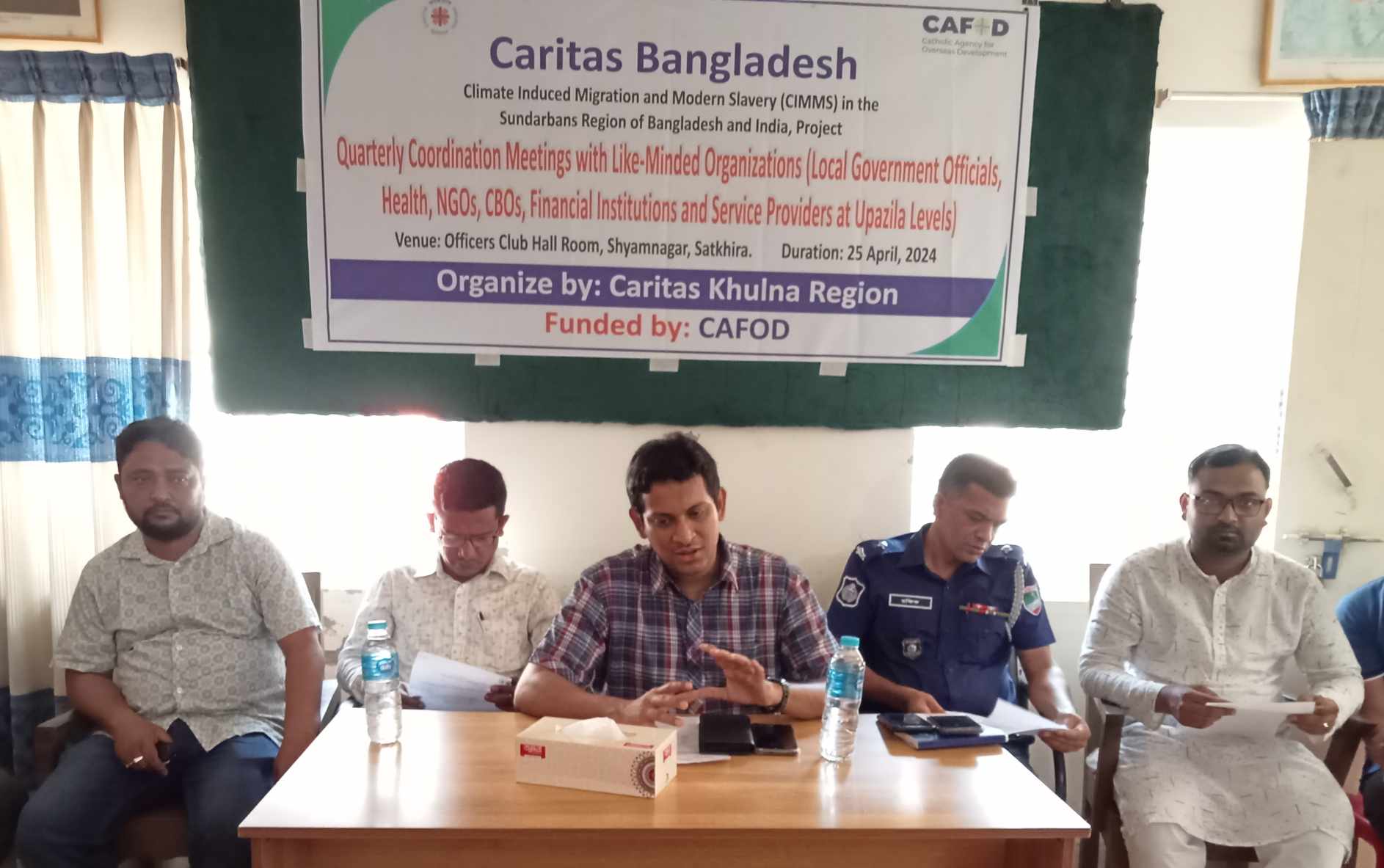 বৃহস্পতিবার ২৫ এপ্রিল সকাল ১০টায় উপজেলা বিআরডিবি হল রুমে কারিতাস খুলনা অঞ্চলের আয়োজনে সি এ এফও ডি'র অর্থয়নে উপজেলা কৃষি অফিসার মোঃ নাজমুল হুদার সভাপতিত্বে প্রধান অতিথির বক্তব্য রাখেন উপজেলা নির্বাহী অফিসার নাজিবুল আলম।প্রকল্প পরিচিতি ও ভিডিও চিত্রের মাধ্যমে উদ্দেশ্যে বর্ণনা করেন, বাংলাদেশ ও ভারতের সুন্দরবন অঞ্চলে জলবায়ু প্ররোচিত অভিবাসন ও আধুনিক দাসত্ব প্রকল্পের প্রজেক্ট অফিসার এড্রিকো মন্ডল।ইউ ডি এফ-সি এল এমএমএস প্রকল্পে সুজন সেনের পরিচালনায় বিশেষ অতিথি হিসেবে উপস্থিত ছিলেন,শ্যামনগর থানার ওসি তদন্ত মোঃ রফিকুল ইসলাম,উপজেলা প্রকল্প বাস্তবায়ন কর্মকর্তা মোঃ শাহিনুর ইসলাম, উপজেলা প্রেসক্লাবের নির্বাচন পরিচালনা কমিটি সদস্য সচিব মোঃ আবু সাঈদ, বেসরকারি এনজিও সিডিও নির্বাহী পরিচালক ও উপজেলা এনজিও সমন্বয় কমিটির সাধারণ সম্পাদক গাজী আল ইমরান,সেনেটারী ইন্সপেক্টর বিকাশ সরকার সহ কারিতাস প্রকল্পের সদস্য কর্মীবৃন্দ।