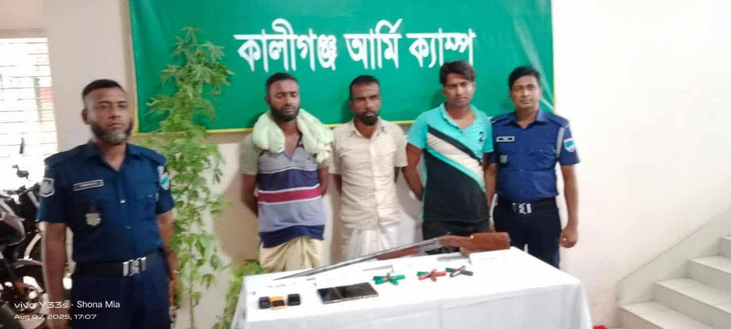 থানাসূত্রমতে জানাযায়, গোপন সংবাদের ভিত্তিতে সেনাবাহিনীর একটি বিশেষ টিম ঘটনাস্থলে অভিযান চালিয়ে উক্ত তিন আসামী ও জব্দকৃত অস্ত্র-গুলি উদ্ধার করে কালিগঞ্জ ক্যাম্পে নিয়ে যায়। আটককৃতদের জিজ্ঞাসাবাদ ও আইনী প্রক্রিয়া শেষে কালিগঞ্জ সেনা সদস্যরা ৭ আগস্ট বিকাল ৫ ঘটিকার সময় উল্লেখিত আসামী ও জব্দকৃত মালামাল শ্যামনগর থানায় হস্তান্তর করেন।