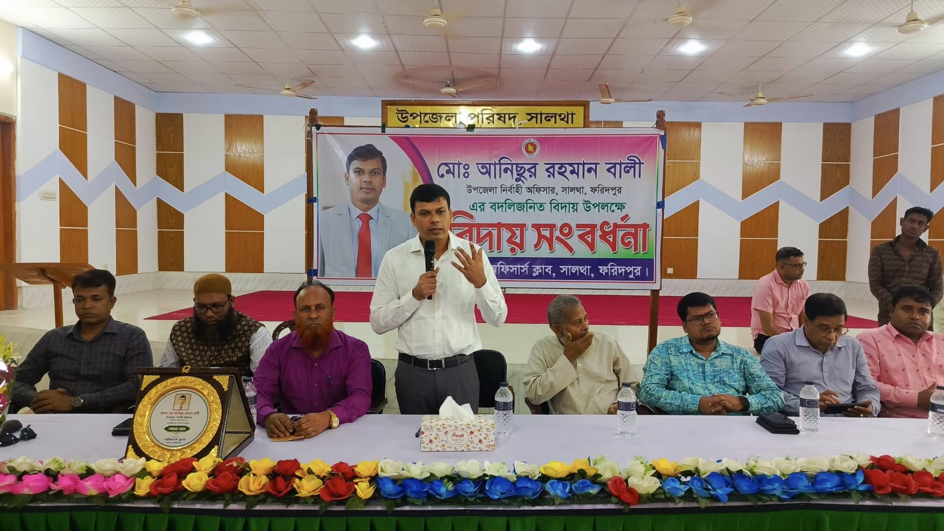 এ সময় উপজেলা নির্বাহী অফিসার আনিসুর রহমান বালি সালথায় কর্মজীবনের দুই বছরের বিভিন্ন স্মৃতিচারণ করে আবেগময়ী বক্তব্য রাখেন।