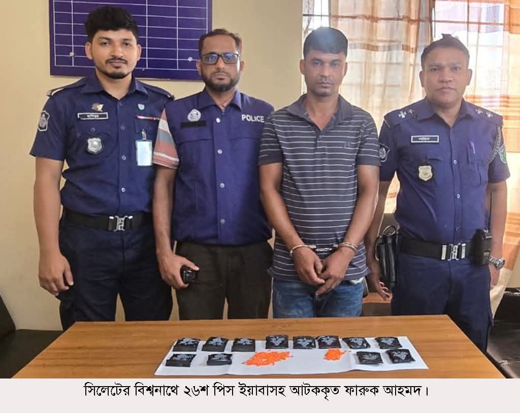 মিজানুর রহমান মিজান,(সিলেট) বিশ্বনাথ প্রতিনিধি:সিলেটের বিশ্বনাথে ২৬০০ পিস ইয়াবাসহ ফারুক আহমদ (৪০) নামের এক মাদক কারবারিকে আটক করেছে থানা পুলিশ। সে সিলেট জেলার জকিগঞ্জ উপজেলার পশ্চিম লোহারমহল গ্রামের মৃত নূর উদ্দিনের ছেলে। (১৮ এপ্রিল) শনিবার গভীর রাতে বিশ্বনাথ উপজেলার লামাকাজি ইউনিয়নের গোলচন্দ বাজার এলাকা থেকে তাকে আটক করা হয়। আটককৃত মাদক কারাবরির বিরুদ্ধে মামলা দায়ের হয়েছে। ২৬শ পিস ইয়াবাসহ একজন আটকের সত্যতা স্বীকার করে বিশ্বনাথ থানার অফিসার ইন-র্চাজ (ওসি) গাজী মাহবুবুর রহমান বলেন, গ্রেপ্তারকৃত ব্যক্তির বিরুদ্ধে মাদকদ্রব্য আইনে মামলা দায়ের হয়েছে। তার বিরুদ্ধে সিলেট জেলার বিভিন্ন থানায় মাদকসহ আরো ১২টি মামলা রয়েছে। আজ রবিবার দুপুরে তাকে আদালতে পাঠানো হয়। মাদকের বিরুদ্ধে পুলিশের অভিযান অব্যাহত রয়েছে বলে তিনি জানান।