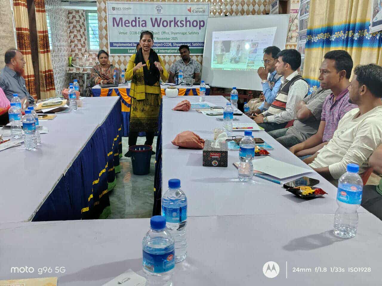 তারই ধারাবাহিকতায় (১৯ নভেম্বর) শ্যামনগর উপজেলার মুন্সিগঞ্জের সিসিডিবি এনগেজ প্রকল্প অফিসে ১ দিনব্যাপী মিডিয়া ওয়ার্কশ আয়োজন করা হয়। মিডিয়া ওয়ার্কশপ উপস্থিত ছিলেন দেশ টিভির সিনিয়র করেসপন্ডেন্ট শরিফুল্লাহ কায়সার সুমন,চ্যানেল ২৪ সিনিয়র ডিস্ট্রিক্ট রিপোর্টার আমেনা বিলকিস ময়না,