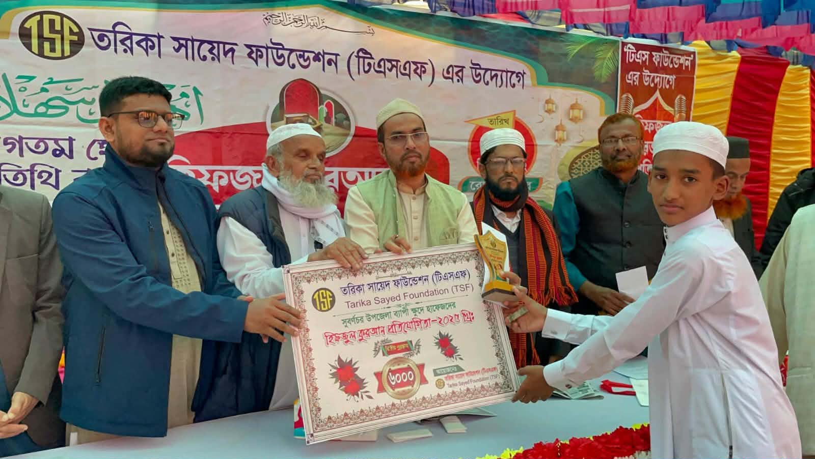 মোঃ আবুল বাসার,নিজস্ব প্রতিনিধি,নোয়াখালীঃনোয়াখালী সুবর্ণচরে তরিকা সায়েদ ফাউন্ডেশন (টিএসএফ) এর উদ্যোগে ৩য় হিফজুল কুরআন প্রতিযোগিতা অনুষ্ঠিত হয়েছে।