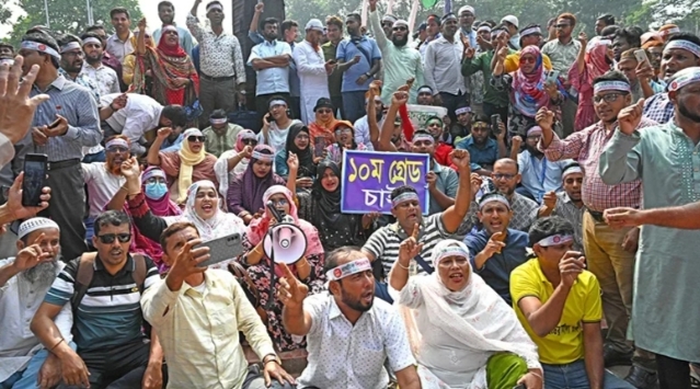ডেস্ক রিপোর্টঃদশম গ্রেডসহ তিন দফা দাবি আদায়ের আন্দোলনে নেতৃত্ব দেওয়া পাঁচজন শিক্ষক নেতাসহ দেশের বিভিন্ন জেলার ৪২ জন সহকারী শিক্ষক এবং একজন প্রধান শিক্ষককে বদলি করা হয়েছে। বৃহস্পতিবার প্রাথমিক শিক্ষা অধিদপ্তরের সহকারী পরিচালক মাহফুজা খাতুনের সই করা এক আদেশ থেকে এ তথ্য জানা গেছে। এদিকে এই আদেশের পর বৃহস্পতিবার দিবাগত রাতে আন্দোলনরত শিক্ষকরা কমপ্লিট শাটডাউন কর্মসূচি স্থগিত করেছেন। একই সঙ্গে রোববার থেকে বার্ষিক পরীক্ষায় ফেরার ঘোষণা দিয়েছেন তারা।