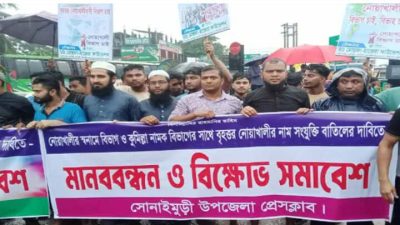 মোঃ আবুল বাসার,নোয়াখালী প্রতিনিধিঃনোয়াখালীকে বিভাগ ঘোষণার দাবিতে সোনাইমুড়ীতে মানববন্ধন ও বিক্ষোভ করে আন্দোলনকারীরা। নোয়াখালীকে বিভাগ ঘোষণার দাবিতে এবার সোনাইমুড়ীতে মানববন্ধন ও বিক্ষোভ কর্মসূচি পালিত হয়েছে। এ সময় ঢাকা-নোয়াখালী মহাসড়কে প্রায় read more